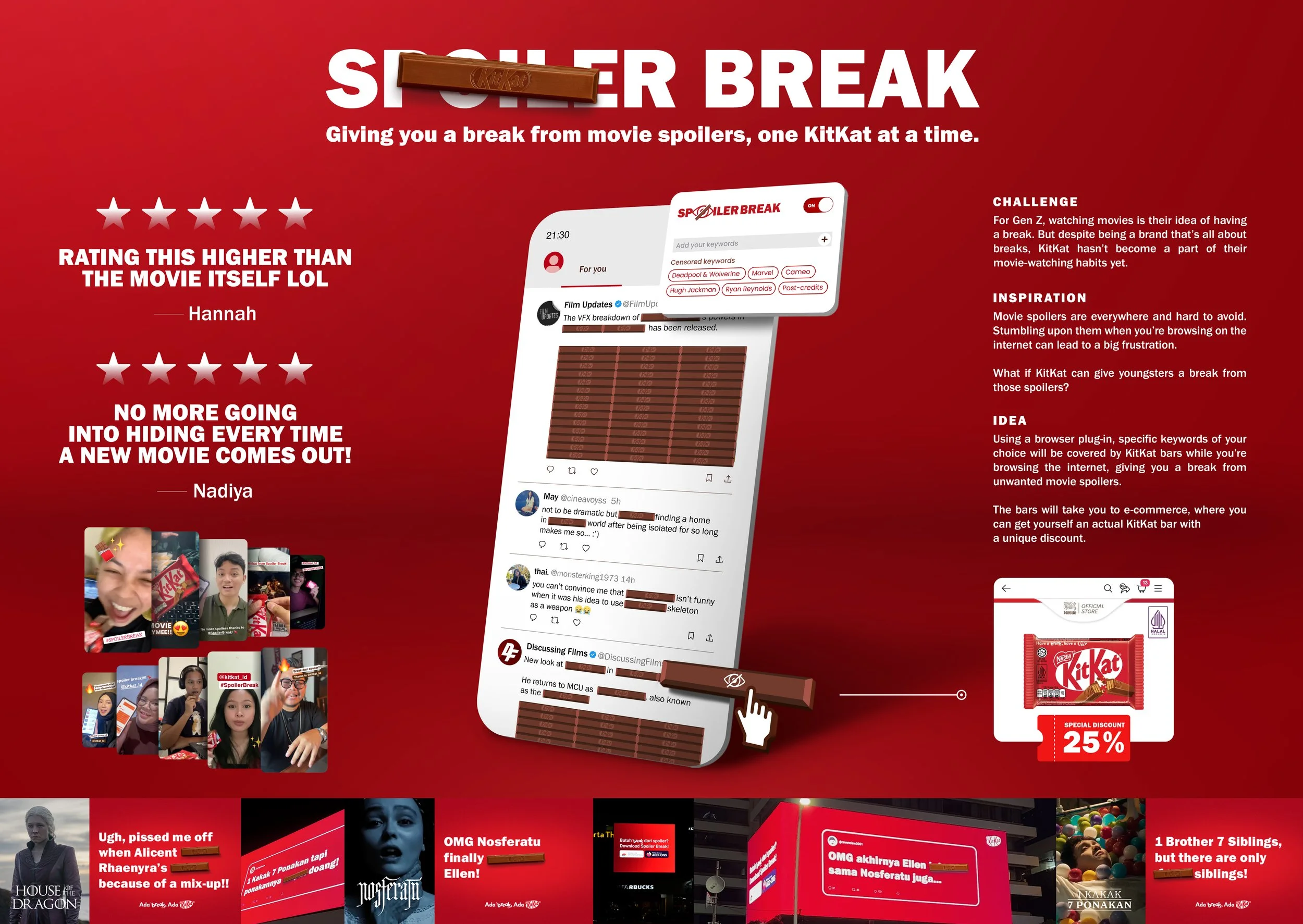 We stream movies to take a break. But when spoilers run rampant on the internet, one scroll is all it takes for spoilers to ruin everything. For KitKat, breaks are serious business – so we gave everyone a break from spoilers, one KitKat at a time.